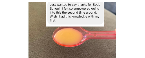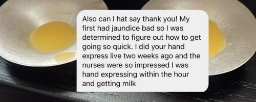 I took your Hand Expression class months ago and it was a game changer for me! Just had my baby and went to the hospital with frozen colostrum. So thankful I brought it, because my babe had jaundice and they wanted me to start supplementing to flush his system, but I didn’t need to use formula because I brought my own colostrum! The hospital staff was so impressed!